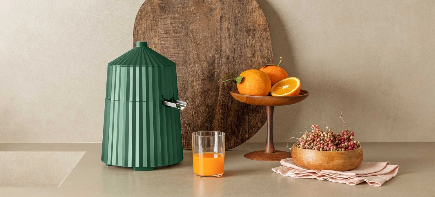 Voor het Italiaanse merk Alessi heeft de gerenommeerde designer Michele de Lucchi de populaire Plissé collectie ontworpen. De collectie omarmt een aantal handige keukenapparaten, van citruspersen tot waterkokers, die niet in de keukenkastjes verstopt hoeven worden. Integendeel, Alessi Plissé wil je laten zien!
