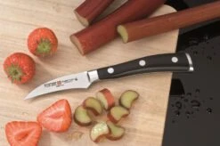 Hout mag niet in de vaatwasser. Was het mes daarom na gebruik even met de hand af. Een sopje van warm water en afwasmiddel is genoeg.